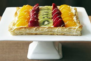 UNROLL pastry on baking sheet. Fold over edges of pastry to form 1/2-inch rim; press firmly to base to seal. Prick pastry sheet with fork. Bake 10 to 15 min. or until puffed and golden brown. Cool completely. Place on tray.