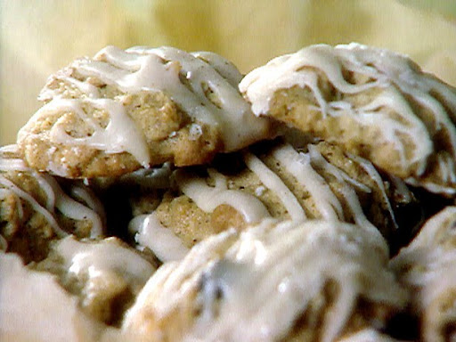 In a small saucepan heat the butter over medium heat until golden brown, stirring occasionally. Remove saucepan from heat; stir in 3 cups sifted powdered sugar and 1 teaspoon vanilla. Stir in enough water (3 to 4 tablespoons) to make an icing of drizzling consistency. Drizzle on warm cookies.