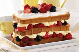STACK cake layers on plate, filling each layer with half each of the remaining berries and pudding mixture. Top with remaining Cool Whip and reserved berries. Cover loosely with foil. Refrigerate 4 hours.