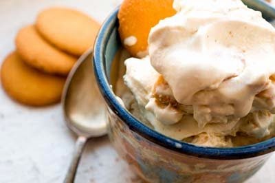 Remove the banana slices, chill overnight or for at least four hours and then freeze according to your ice-cream maker’s instructions. About five minutes before the ice cream is finished being whipped around, add the Nilla Wafers.
