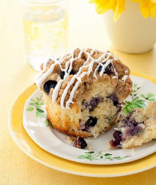 Jumbo-size and packed with fruity flavor, these muffins combine blueberries, cornmeal and lemon juice with a traditional streusel topping and a sweet icing of powdered sugar and milk.