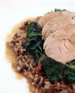 PORK ROASTED TENDERLOIN WITH APPLE SAUCE, APPLED WILD RICE, AND GREENS