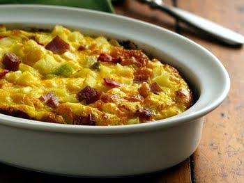 * 2 Heat oven to 350°F. In medium bowl, beat eggs, milk and mustard with wire whisk until blended. Stir in potatoes, ham and cheese.