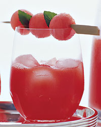 - 2 pounds seedless watermelon, peeled and cubed, plus 1/2 pound watermelon cut into balls with a melon baller and skewered on picks