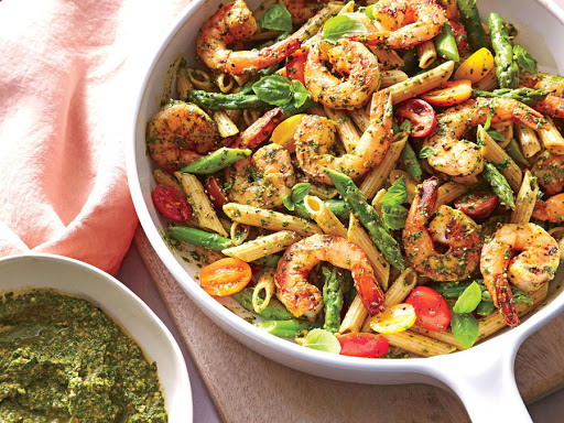 Spinach Pesto Pasta with Shrimp