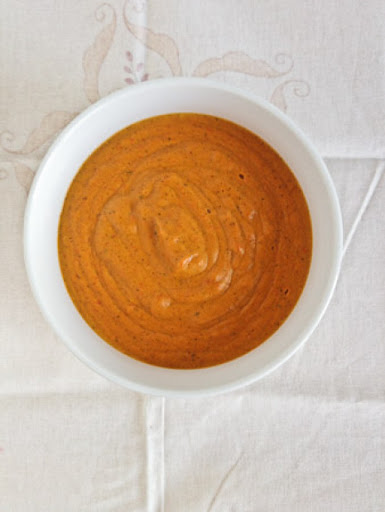 Add oil to a saute pan and heat over medium-high heat.  Once oil is heated, add in your chopped onion and red pepper.  Season with salt and pepper.  Saute vegetables for about 7 minutes, stirring frequently.  Once vegetables have softened, stir in garlic and cook until fragrant, about 1 minute.  Transfer your sauteed mixture to a blender.  To the blender, also add in the nutritional yeast, cashews, and alessi dipping spices seasoning.  Blend until smooth.  Serve hot or cold.