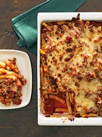 Sauce. Crumble 1 pound sweet Italian sausage in a 3-quart saucepan over medium heat. Cook 8 minutes, or until no longer pink. Remove from pot with a slotted spoon. Add onion to pot; cook 4 minutes. Add garlic and cook another minute. Stir in whole tomatoes and their juice, breaking tomatoes apart with a wooden spoon. Stir in tomato sauce, tomato paste, sugar, salt and pepper. Simmer, stirring occasionally, for 20 minutes.