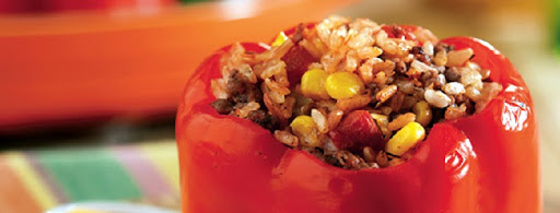 * Or, substitute ground turkey. If softer bell peppers are desired, reduce oven temperature to 375°F and cook filled peppers (covered) for one hour. Save time and clean-up by substituting 1 package of Minute Steamers Brown Rice.