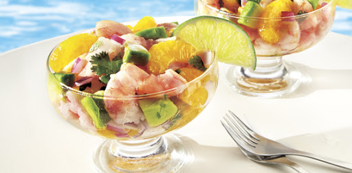 5.Dice the avocados and add to the shrimp mixture. Serve atop plated spring mix or in individual cups with crackers. Garnish with a sprig of cilantro or a whole shrimp on top.