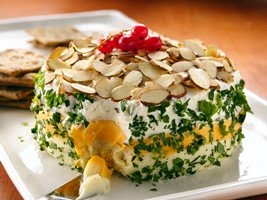 Instead of serving cheese spreads separately, layer them for an attractive appetizer. Sliced almonds and chopped parsley add crunch and color.