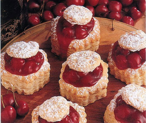 3. Just before serving, fill each shell with pie filling. Top with reserved pastry circles. Dust with confectioners' sugar.