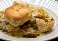 Meanwhile, bake the biscuits as directed on the package. Split a biscuit and spoon some of the chicken and vegetables over the bottom biscuit. Put the top half of the biscuit on the chicken and gravy.