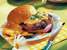 3.Cover and grill patties, pepper side up, 4 to 5 inches from medium heat about 10 minutes for medium doneness, turning once. During last minute of grilling, spoon 1 tablespoon cheese sauce onto each patty; spread slightly. Cover and grill until cheese sauce begins to melt.