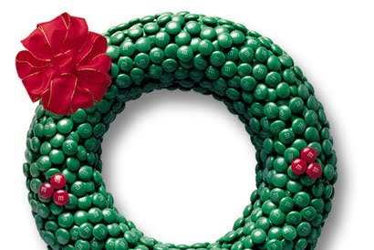 4. Place green M&M’S® Brand Milk Chocolate Candies for the Holiday all over the ring. For any open spots, dab some of the vanilla frosting on the back of the green M&M’S® Brand Milk Chocolate Candies for the Holiday and place where needed.
