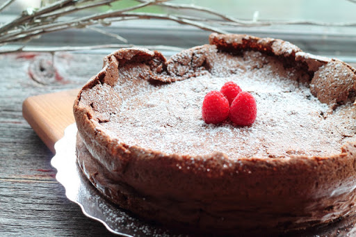 Pour your batter into the prepared spring form pan and bake for 35-40 minutes. When it's done you'll see the top start to crack along the sides and when you insert a toothpick it should come out with a little moist crumb stuck to it. Let it cool for about 10 minutes before removing the sides of the pan.