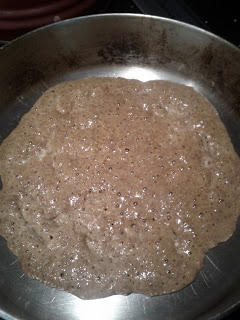 Mix it all together. I made it just like a pancake/crepe in a skillet on the stovetop. You flip it when the bubbles form. The photo is the entire recipe, with a handful of blueberries and my coffee with cream and coconut oil. Very filling. The day before I topped them with Cream Cheese.