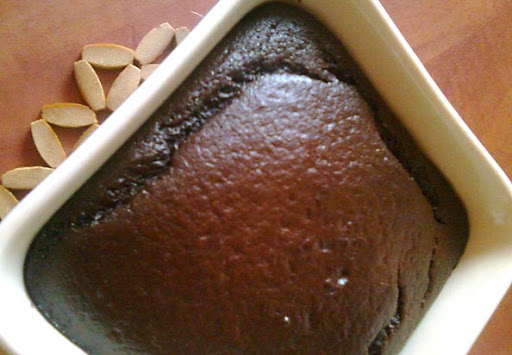 Preheat oven to 175C. Take your kitchen robot (I remember how Zuzie called blender once) and make a completely smooth mass out of beans and eggs (add eggs gradually). You should have no traces of beans in this mixture. Nonetheless, if there are bits of beans, take a sieve and pass the mixture through it. Melt the chocolate, cool slightly and then whisk together with the bean-egg mixture and baking powder. Pour batter in a greased pan. Bake for about 30 min. Each oven is different, so the time may vary, but you really don’t want to overbake the cake.