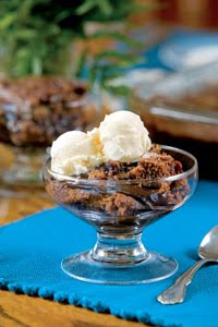 5.Spoon into individual dessert dishes. The cobbler makes it own chocolate sauce in the bottom of the pan. Spoon sauce over each serving.