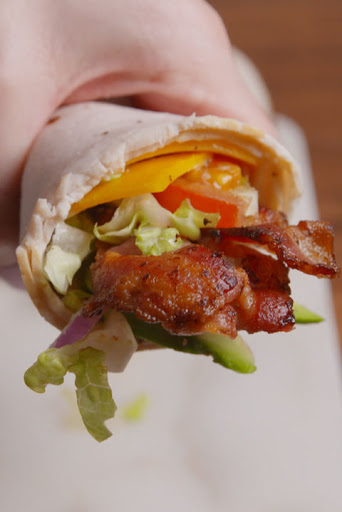 On a clean work surface, place two slices deli turkey. Spread a thin layer of mayo on top. Top with cheddar, lettuce, tomato, red onion, avocado, and bacon and season generously with salt and pepper.