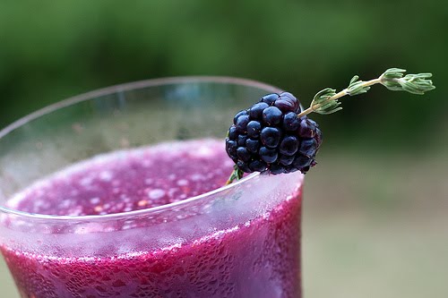 Place 16 of the blackberries in a food processor with the thyme leaves. Pulse 30 seconds. Push the blackberry puree through a fine-mesh sieve into a small bowl to remove seeds, pressing on solids to extract as much liquid as possible.