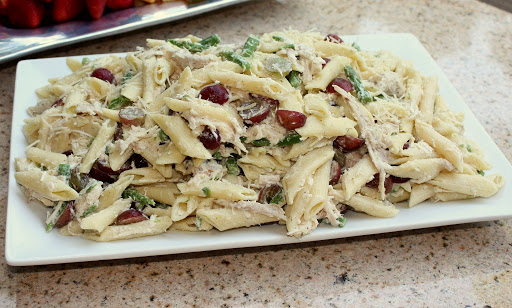I may be a little bold in making the title of this post “The Most Delicious” but trust me, this chicken pasta salad recipe is really out of this world. The grapes, dill weed, blanched asparagus and shredded fresh parmesan take this salad to a whole new level of pasta salad wonderful-ness.