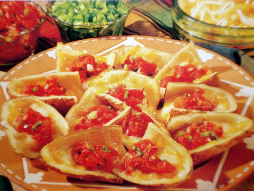 Place potao skins on a serving platter. Divide salsa evenly among potato skins. Serve immediately