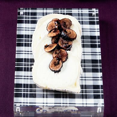4. Heat the chevre cheese slices quickly by using your oven's broiler function for about 3 minutes, or until the cheese has slightly started to melt. Place the cheese on a serving plate, and top it with the candied figs and vinegar mixture.