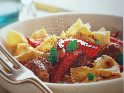 Meanwhile, cut the sausage into 1-in pieces. in a large skillet, cook sausage and sweet peppers over medium-high heat until sausage is brown. Drain fat
