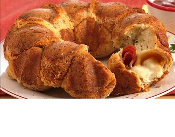 Pepperoni is the surprise inside each piece of this pull-apart snack ring.