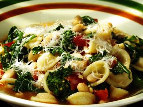 Cook ziti. Heat olive oil and add onion, garlic for 2 minutes. Add chopped tomatoes, parsley and beans. Cook covered for 7 minutes. Steam broccoli and toss pasta, bean mixture, broccoli, parmesan cheese and basil leaves