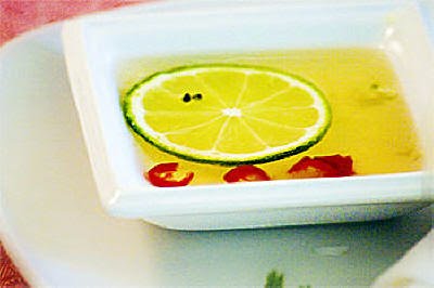 2. Add the lime juice and pulp, fish sauce and water and stir to dissolve the sugar.