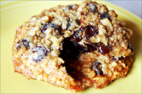 In a medium sized mixing bowl, sift together flour, baking soda and salt; stir in oats until combined.
