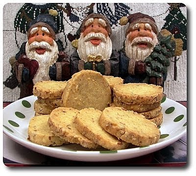 Scoop dough out onto a lightly floured surface and form into a ball. Evenly divide dough into two pieces. Form each piece into a 9" long log. Scatter 2 tablespoons chopped pecans on work surface and roll one log in pecans to coat. Repeat with remaining pecans and log of dough. Wrap dough tightly with saran wrap, gently pressing nuts into dough. Place into the refrigerator and chill until very firm, at least 2 hours.