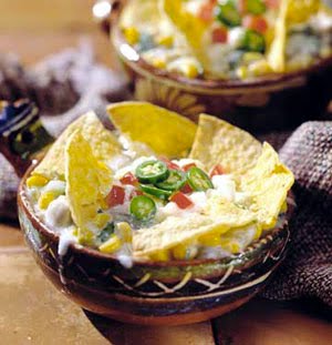 2. Bake, uncovered in a 350F oven for 20 minutes. Arrange baked tortilla pieces on top of casseroles. Top with cheese; bake for 5-10 minutes more.