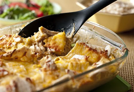 Slow-cooking the chicken before shredding makes it especially tender and flavorful...when that chicken is layered with tortillas and cheese, you've got a simple, family-friendly casserole.