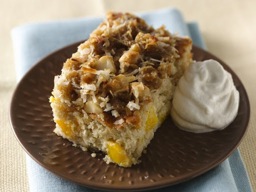 Broil cake with top 3 inches from heat about 3 minutes or until topping is golden brown. Cool 30 minutes before serving. If desired, serve with sweetened whipped cream.