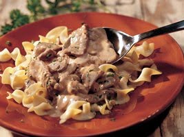 4.Stir remaining 1/2 cup broth into flour; stir into beef mixture. Add onion mixture; heat to boiling, stirring constantly. Boil and stir 1 minute. Stir in sour cream; heat until hot (do not boil). Serve over noodles.