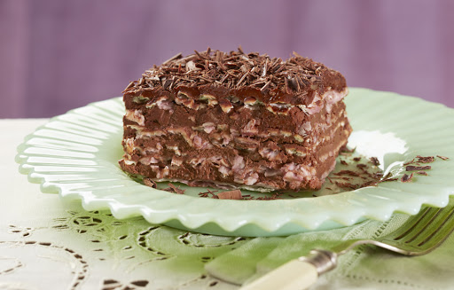 Shave chocolate over the top of the cake and refrigerate for a minimum of 4 hours.