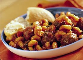1.In 10-inch skillet, heat water and pasta sauce to boiling. Stir in macaroni, meatballs and olives. Return to boiling.