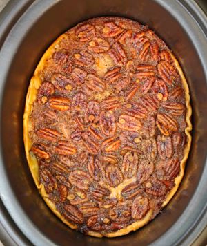 Place uncooked piecrust in the slow cooker and press up the edges about 1/2 inch up the sides.