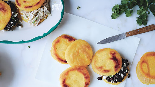 Split arepas and stuff with desired fillings; serve with lime wedges for squeezing over.