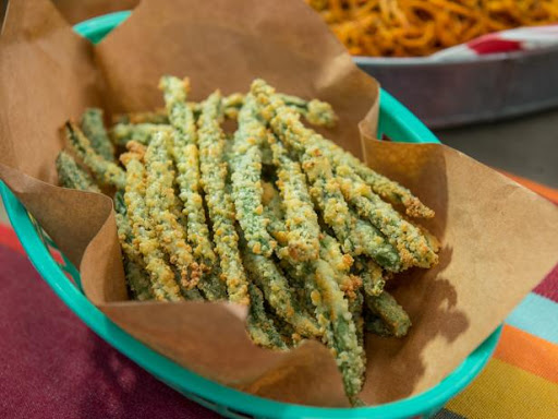 Beat the egg in a shallow dish with 1 tablespoon water. In another shallow dish, stir together the Parmesan, garlic powder and some salt and pepper. Dip the green beans first in the egg mixture, rolling them to fully coat. Using a fork, gently transfer the green beans to the cheese mixture and roll to evenly coat them on all sides with the cheese.