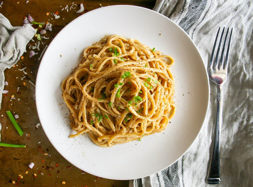 Add cooked linguine, and toss to coat. Garnish with thinly diced green onion.