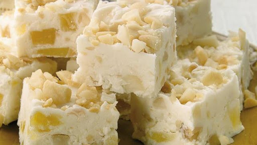Remove fudge from pan by lifting foil. Remove foil; cut into squares.