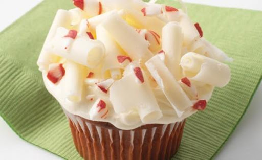 5. Place a heaping tablespoon of frosting on each cupcake and swirl to spread with a short metal spatula or a spoon, taking care to cover the tops completely. Place these cupcakes, uncovered or in a cake server, in the refrigerator until the frosting sets, 20 minutes. The cupcakes are ready to serve.