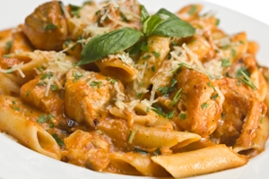 While the sauce simmers, cook the pasta in salted boiling water until cooked to al dente (with a bite to it). While the pasta cooks, prepare your salad or other side dishes.