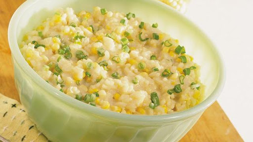 Add rice; cook and stir until thoroughly heated. Add 1/2 cup hot broth; cook and stir until almost all liquid is absorbed. Continue adding broth 1/2 cup at a time, cooking and stirring for about 30 minutes or until rice is creamy but still firm in the center, adding corn during last 10 minutes of cooking time. There may be a small amount of broth remaining.