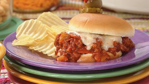 To assemble sandwiches, spoon about 1/3 cup beef mixture onto bottom halves of buns. Top each with scant 2 tablespoons cheese. Cover with top halves of buns.