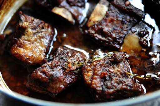 But seriously. Leesten. You must make this as soon as you can. If you’ve never had beef short ribs before, you’re missing out on one of life’s great pleasures—and I’m not exaggerating this time. Beef short ribs are like the most flavorful, delectable, tender, soft pot roast you can possibly imagine—but the meat is on a handy stick for your eating convenience. And really, if you make ‘em right, the stick is only incidental—the meat falls off the bone if you so much as breathe on it. Oh, is it ever a treat.
