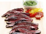 Slice the tomatoes and season with salt and pepper. Thinly slice the steak against the grain. Serve with the tomatoes and salsa verde.